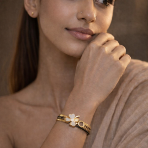 Step into a world where vintage charm meets contemporary sparkle. Our Heritage Floral Bracelet with Black Enamel & Crystal Work is a masterpiece of intricate craftsmanship, designed for the woman who ...