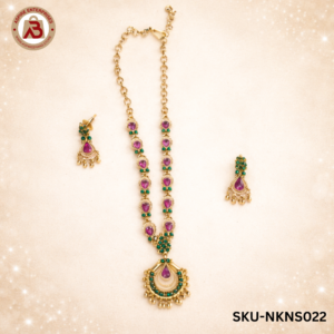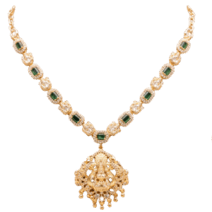 Traditional Gold-Tone Lakshmi Necklace Set with Green Stones