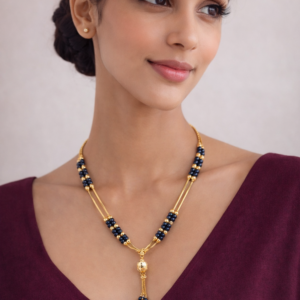 Celebrate your sacred bond with understated elegance. Our Elegant Gold-Tone Mangalsutra with Black Beads & Minimal Pendant is thoughtfully designed for the modern married woman who cherishes tradition but adores minimalist ...