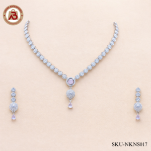 Elevate your ethnic and contemporary wardrobe with the ethereal charm of our Shimmering American Diamond Silver-Plated Necklace. Designed for the modern woman who loves a touch of glamour, this exquisite ...